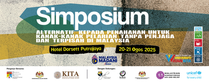 Pada 20 dan 21 haribulan Ogos 2025 (Rabu & Khamis), Institut Kajian Etnik (KITA), Universiti Kebangsaan Malaysia (UKM) dengan kerjasama strategik Kementerian Dalam Negeri (KDN) dan sokongan United Nations Children’s Fund (UNICEF), Yayasan Chow Kit, SUKA Society dan Malaysian Humanitarian Aid and Relief (MAHAR) telah menganjurkan Simposium Alternatif Kepada Penahanan untuk Kanak-Kanak Pelarian Tanpa Penjaga dan Terpisah di Malaysia bagi membincangkan isu-isu migrasi, persoalan asas kemanusiaan, hak asasi, serta masa depan generasi muda khususnya kanak-kanak yang semakin terdedah kepada pelbagai risiko di luar jangka.