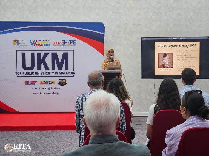 The second leg of a two-day seminar for exchange students from Université Paris Saclay (UVSQ) was held on May 27th, 2024 at UKMShape from 10 a.m. to 12.00 p.m. Attended by 16 UVSQ students, the two-hour seminar aimed to provide the French students with insights about Malaysia. The second day of the seminar consisted of a session of sharing on Malaysian national anthem, ‘Negaraku’ by KITA Research Fellow Dr. Shazlin Amir Hamzah. The first leg of the seminar was held on April 22nd, 2024.