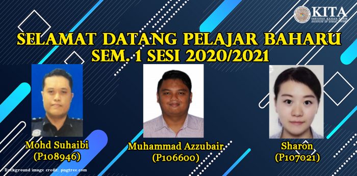Selamat datang ke KITA dan salam perkenalan buat tiga orang pelajar baharu yang telah mendaftar dalam program pengajian masing-masing mulai Semester 1 Sesi 2020/2021. Maklumat lanjut mengenai pelajar KITA baharu dan lama boleh dirujuk di pautan ini.