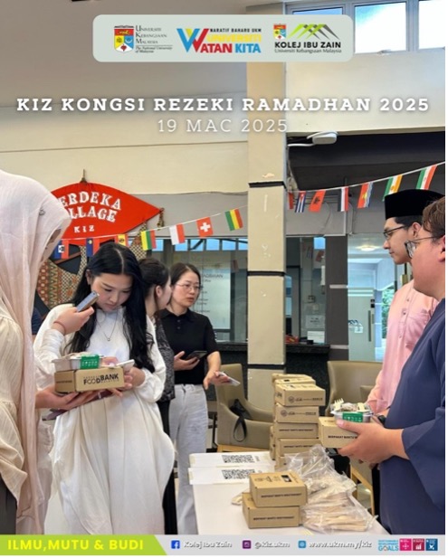 BANGI, 20 March 2025 – Kolej Ibu Zain (KIZ) recently launched its annual Ramadan welfare drive titled KIZ Kongsi Rezeki Ramadan 2025. This initiative served as a vital support system for students and staff facing financial challenges, ensuring they could observe the fasting month with proper nourishment.
