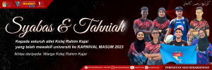 Sekalung penghargaan dan tahniah diucapkan kepada para atlet yang telah mewakili Kontijen Universiti Kebangsaan Malaysia dalam acara yang dipertandingkan sempena Karnival Majlis Sukan Universiti Malaysia (MASUM) 2023 yang diadakan baru-baru ini. seramai 8 orang pelajar Kolej Rahim Kajai telah mengharumkan nama Kolej Rahim Kajai dan Universiti Kebangsaan Malaysia.