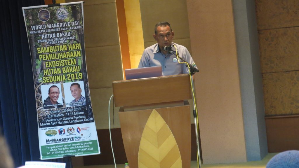 Bersempena Sambutan Hari Bakau Sedunia, Koperasi Komuniti Kampung Kilim Langkawi Berhad dan Galeria Perdana, dengan kerjasama Lembaga Pembangunan Langkawi (LADA), Friends of Langkawi Geopark (FLAG) dan Institut Alam Sekitar dan Pembangunan (LESTARI) telah mengadakan satu ceramah bertajuk “Hutan Bakau: Simbol Jati Diri Masyarakat Pinggir Pantai”. Penceramah jemputan adalah Dato’ Dr. Kamarulzaman Abdul Ghani (Presiden FLAG) dan Dr. Ahmad Aldrie Amir, iaitu selaku Ketua Program Integriti Alam Sekitar, Pusat Penyelidikan Langkawi (PPL), LESTARI, UKM. Antara para peserta yang hadir termasuklah daripada komuniti setempat, agensi-agensi kerajaan dan swasta, pemandu pelancong, NGO, pelajar-pelajar Latihan Industri (LI) dan lain-lain. Program dimulakan dengan ucapan aluan oleh Pengurus Koperasi Komuniti Kampung Kilim Langkawi Berhad, iaitu En. Imran Ismail dan diakhiri dengan penyampaian cenderamata kepada penceramah.
