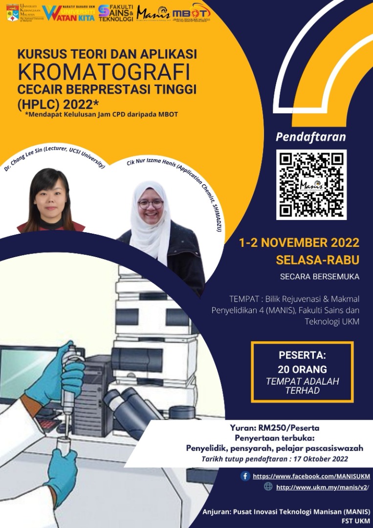 The HPLC course aims to provide researchers and students with theoretical knowledge and practical skills in operating HPLC instruments. Conducted in a two-day hybrid format, it focuses on understanding HPLC principles, hands-on operation, and data analysis for research applications.