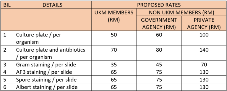 Our department offer sales services for culture plates and staining slides for teaching purposes, covering various types of bacteria and fungi, to customers from UKM, government agencies, and private organisations.