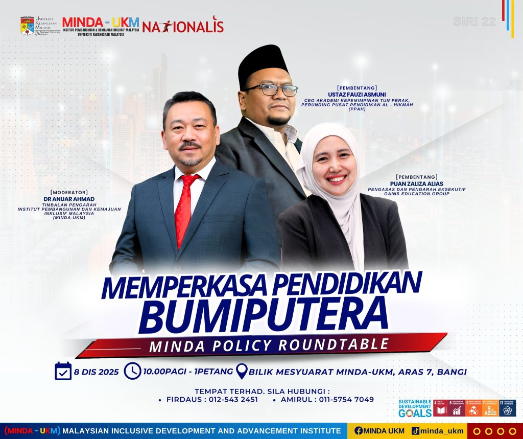 Hari ini, MINDA Policy Roundtable (MPR) mempertemukan pemimpin dan pemikir pendidikan dipimpin oleh YBrs. Dr. Anuar Ahmad bersama panel pembentang iaitu Ustaz Fauzi Asmuni dan Puan Zaliza Alias. Perbincangan yang dianjurkan secara bersama dengan Gabungan Nasionalis turut dihadiri oleh wakil kementerian, pakar pendidikan, yayasan dan pembuat dasar. Perbincangan meneliti setiap aspek pendidikan Bumiputera secara kritikal dari prasekolah hingga institusi tinggi, dari modul hingga metodologi pengajaran, dengan fokus utama: bagaimana ilmu dan nilai Islam dapat diterapkan secara efektif untuk membina jati diri pelajar sejak awal lagi.