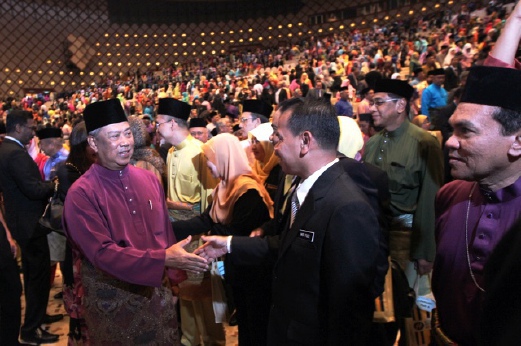 Mantan Timbalan Perdana Menteri, Tan Sri Muhyiddin Yassin bersalaman dengan tetamu yang hadir pada Majlis Perutusan Tahun Baharu 2015 Kementerian Pendidikan Malaysia di Pusat Konvensyen Antarabangsa Putrajaya (PICC) dan mengumumkan penubuhan Malaysian Inclusivity, Development and Advancement Institute (MINDA) Universiti Kebangsaan Malaysia.