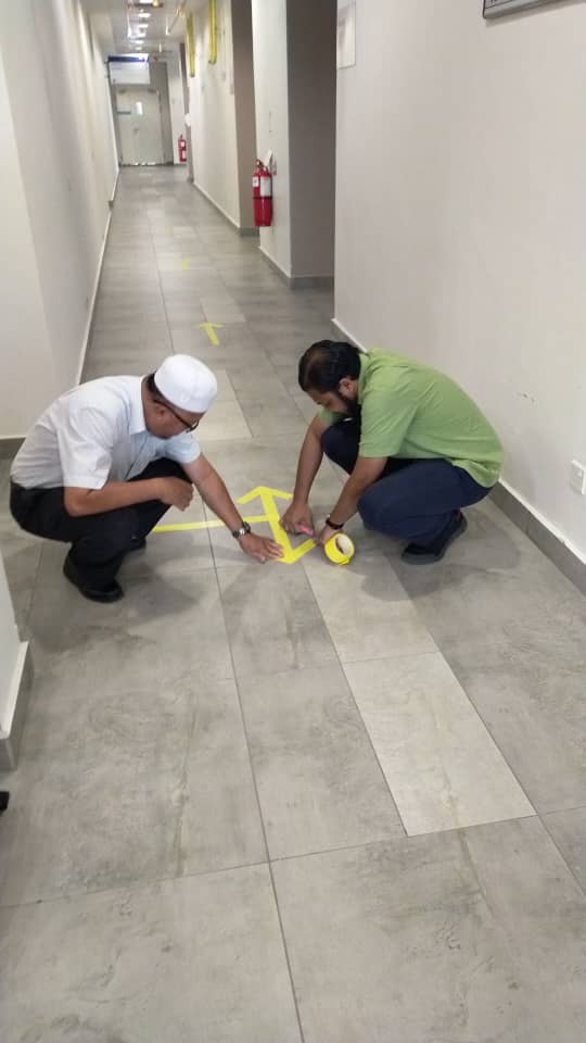 11 June 2020 : Unit Makmal Pelbagai Guna (MPG) bergotong royong membuat “Penjarakan Sosial” dan tanda peringatan SOP di dalam makmal serta ruang luar makmal …