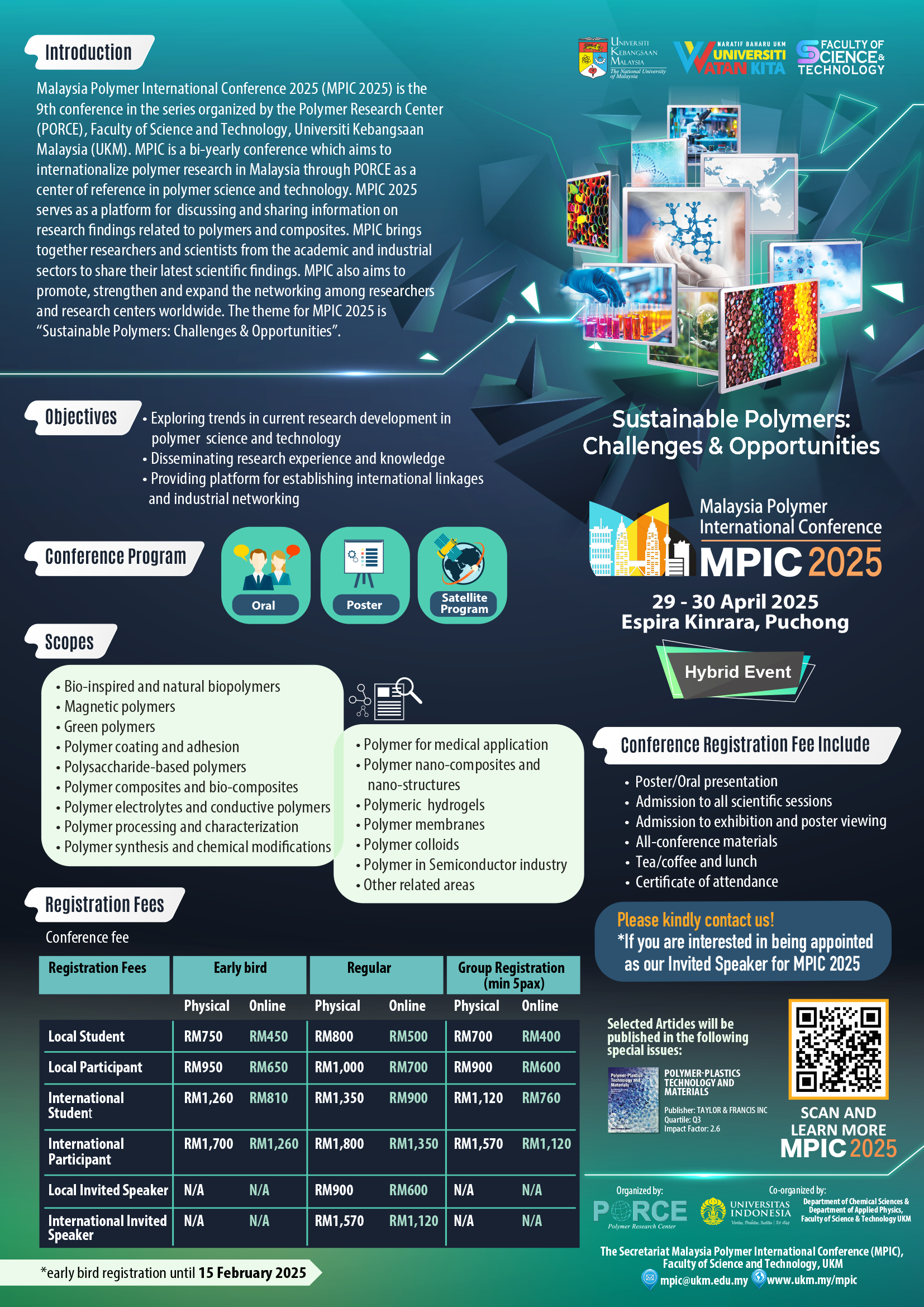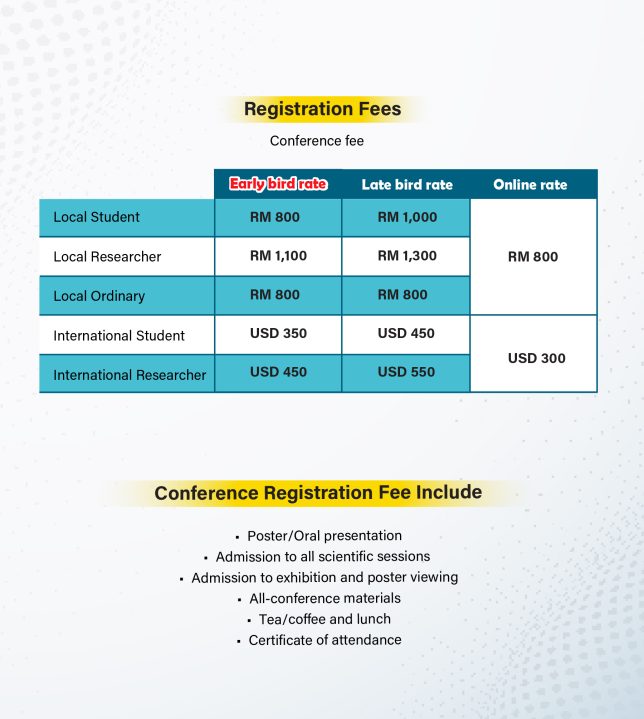 Abstract must be sent by email to Scientific Committee at scientific_mpic@ukm.edu.my by :