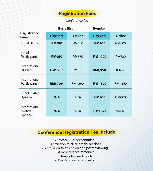 Registration Fees (inclusive of attendance to all talks, conference materials, lunches and refreshment)