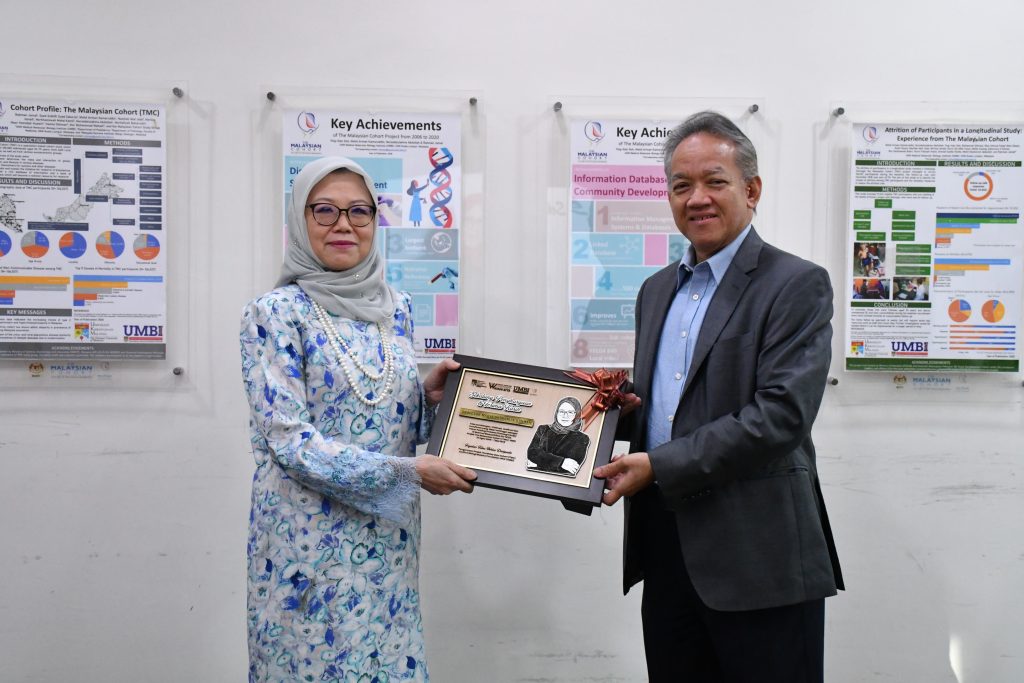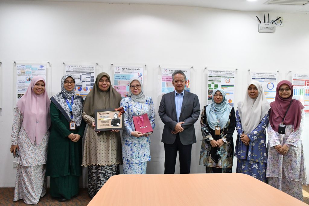 25 Jun 2025 (Rabu) – Pihak Pengurusan Projek The Malaysian Cohort (TMC) telah mengadakan majlis penghargaan kepada Profesor Madya Dr. Hanita Othman atas sumbangan dan khidmat bakti sebagai Pakar Patologi Pelawat (Patologi Kimia) dan Approved Signatory (Nilai Kritikal – Patologi Kimia) bagi Makmal Akreditasi MS ISO 15189, Projek TMC, UMBI.