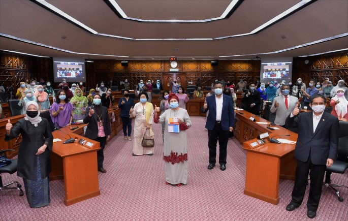 Dalam majlis ini, Ahli Lembaga Pengarah UKM, Tan Sri Dr. Jemilah Mahmood, turut hadir secara dalam talian.