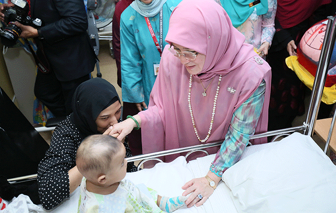 Tunku Hajah Azizah Aminah Maimunah Iskandariah turut meluangkan masa melawat wad kanak-kanak dan memberi sumbangan duit raya serta hamper kepada kanak-kanak di wad tersebut.