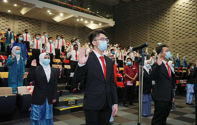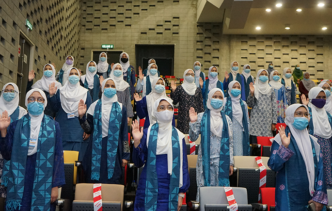 BANGI, 5 Ogos 2020 – Seramai 114 pelajar baharu ASASIpintar Universiti Kebangsaan Malaysia (UKM) memulakan Sesi Pengajian Akademik 2020/2021 dengan melafazkan ikrar tanda bermulanya sebagai warga UKM dalam satu majlis ringkas di Auditorium Permata Genius di Kampus Induk di sini petang ini.