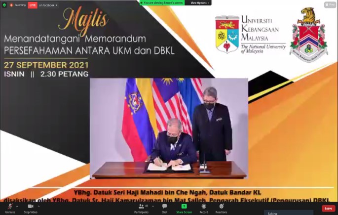 BANGI, 28 September 2021 – Jalinan kerjasama yang dimeterai antara Jabatan Kesihatan Masyarakat, Fakulti Perubatan, Universiti Kebangsaan Malaysia (UKM) dengan Dewan Bandaraya Kuala Lumpur (DBKL) adalah untuk meningkatkan kesedaran penjagaan kesihatan awam dalam kalangan masyarakat di ibu kota.