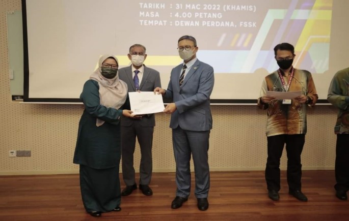 Serahan surat tawaran KUPD disempurnakan oleh Naib Canselor, Prof. Dato’ Ts. Dr. Mohd Ekhwan Hj. Toriman diiringi oleh Pendaftar, Dato’ Dr. Syed Kamarudin Sadakkuthulla.
