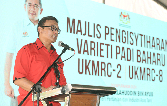 ALOR SETAR, 25 Februari 2018 – Menteri Pertanian dan Industri Asas Tani, Dato’ Salahuddin Ayub telah melancarkan varieti padi baharu UKMRC-2 dan UKMRC-8 yang merupakan hasil penyelidikan penyelidik Universiti Kebangsaan Malaysia (UKM) melalui pendebungaan terkawal spesis padi liar.
