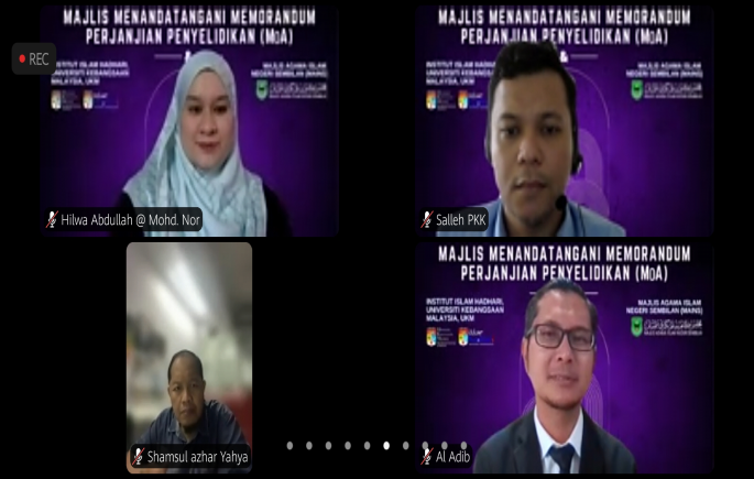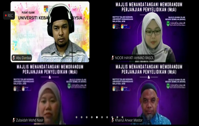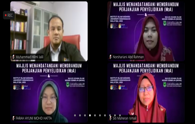 MoA yang diadakan secara dalam talian melalui platform Zoom itu telah ditandatangi Prof. Ir. Dato’ Dr. Abdul Wahab yang mewakili UKM dan Dato’ Dr. Abdul Aziz  mewakili MAINS serta disaksikan oleh Pengarah Institut Islam Hadhari UKM, Prof. Dr. Fariza Md. Sham dan Setiausaha MAINS, Ahmad Husaini Mustafa.