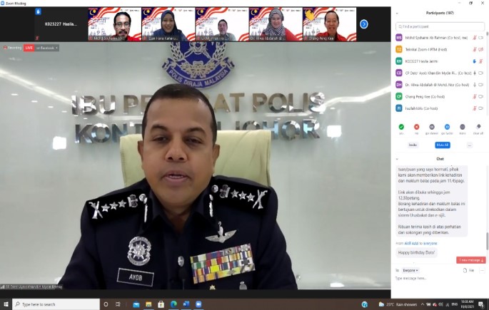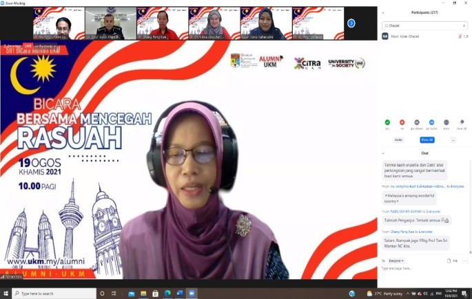 Menyedari kepentingan nilai integriti dan akauntabiliti, Pusat Perhubungan Alumni telah menganjur webinar Bicara Bersama Mencegah Rasuah bersama Ketua Polis Johor yang juga merupakan Alumni  Fakulti Pengurusan Perniagaan tahun 1990 dan Fakulti Teknologi Sains Maklumat tahun 2001, Dato’ Ayob Khan Mydin Pitchay bagi mendedahkan betapa pentingnya mengekalkan integriti yang tinggi dalam setiap lapangan kerjaya yang diceburi.