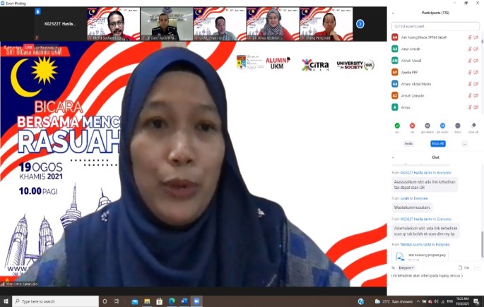 Sesi webinar yang dikendalikan oleh Timbalan Pengarah Pusat Perhubungan Alumni yang juga merupakan Pensyarah Kanan Psikologi, Fakulti Sains Sosial dan Kemanusiaan, Dr. Hilwa bin Abdullah, telah dipengerusi oleh Pensyarah Kanan Pusat Pengajian Citra Universiti, Dr Iszan Hana Kaharudin.