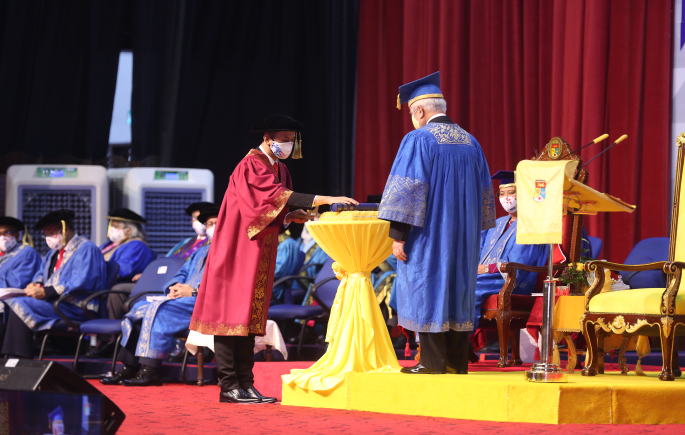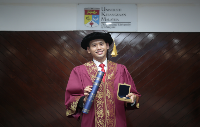 BANGI, 27 November 2021 – Penerima Anugerah Emas Kedoktoran, Majlis Konvokesyen Universiti Kebangsaan Malaysia (UKM) Ke-49, Dr. Syar Meeze Mohd Rashid menggunakan ruang masa yang ada untuk berdakwah kepada golongan Orang Kurang Upaya (OKU).