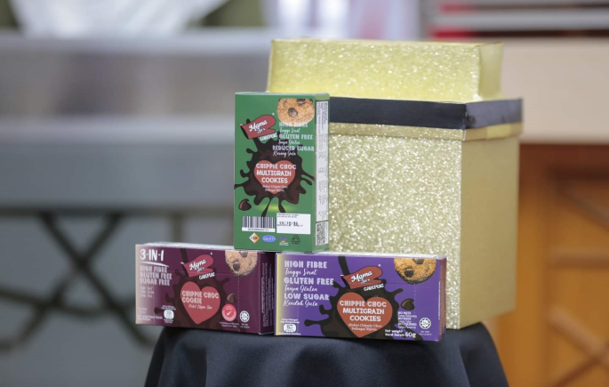 According to her, Chippie Choc Cookie is the first cookies in Malaysia that meets the labelling standards for high fibre, gluten-free, and sugar-free but is also very tasty and suitable as a snack for adults and children.