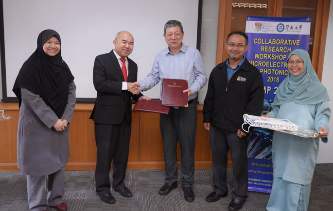 BANGI, 21 Ogos 2016 – Universiti Kebangsaan Malaysia (UKM) melalui Pusat Kejuruteraan Elektronik dan Komunikasi Termaju (PAKET), Fakulti Kejuruteraan dan Alam Bina (FKAB) menjalin kerjasama dengan Universiti Jinan (JNU), China bagi meningkatkan kualiti akademik dan penyelidikan dalam memastikan UKM terus kukuh sebagai sebuah universiti penyelidikan terulung di Malaysia.