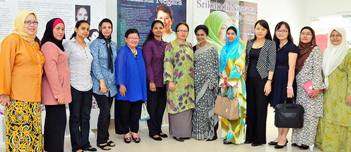 Present during the visit were Vice President of NCWO Dato’ Ramani Gurusamy; Marketing Manager of Wanita Inspirai Negara (WIN), Sukma Buyong ; Managing Director WIN, Puan Sri Devi; Tun Fatimah Fellows, Prof Madya Dr Faridah Shahadan and Prof Madya Dr Zaharah Hassan, Cik Rozita Ibrahim and PhD students Zahra Khajeh (from Turkey), G.T. Madhubhash (Sri Lanka) and Nadia Abas from Wedding Design.