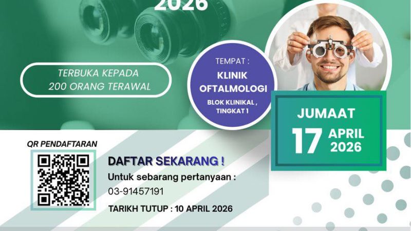 Jabatan Oftalmologi, HCTM akan menganjurkan program Hari Terbuka Saringan Mata Warga UKM 2026 bagi semua kakitangan UKM. Program ini bertujuan meningkatkan kesedaran mengenai kepentingan penjagaan …