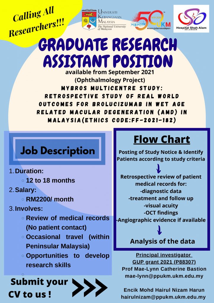 Emelkan permohonan beserta CV ke Prof Mae-Lynn Catherine Bastion (mae-lynn@ppukm.ukm.edu.my) atau En. Hairul (hairulnizam@ppukm.ukm.edu.my)