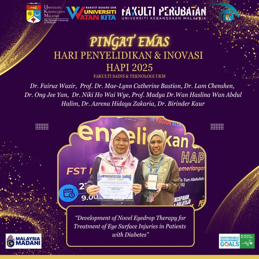 atas kejayaan merangkul Pingat Emas dalam HAPI 2025 Fakulti Sains & Teknologi UKM menerusi projek: