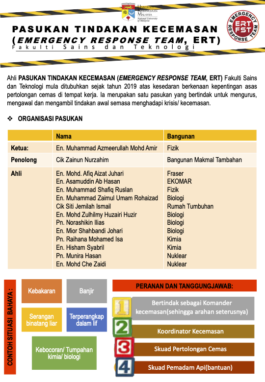 Ahli PASUKAN TINDAKAN KECEMASAN (EMERGENCY RESPONSE TEAM, ERT) Fakulti Sains dan Teknologi mula ditubuhkan sejak tahun 2019 atas kesedaran berkenaan kepentingan asas pertolongan cemas di …