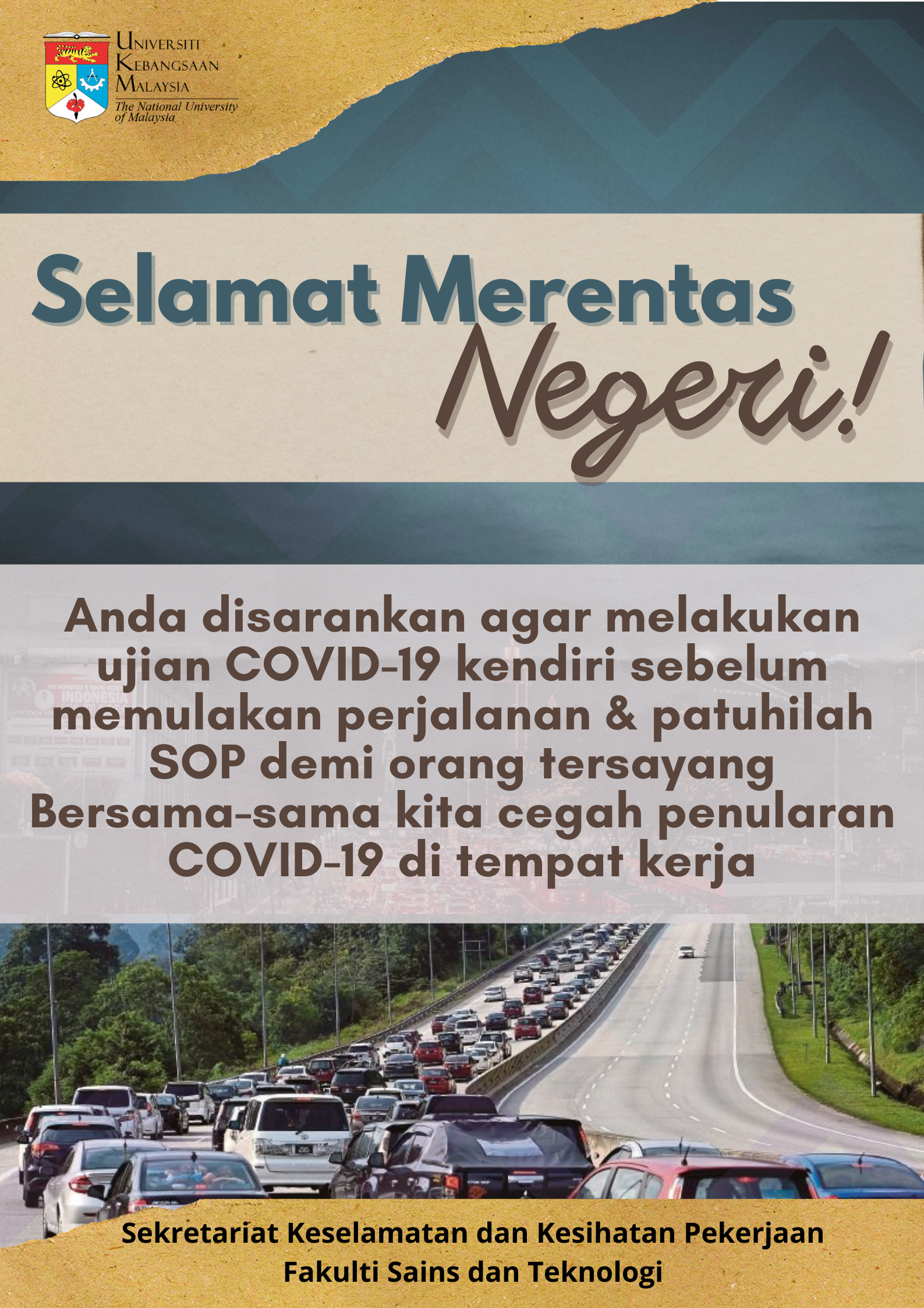 Sekretariat Keselamatan dan Kesihatan Pekerjaan, Fakulti Sains dan Teknologi ingin mengingatkan supaya anda disarankan agar melakukan ujian COVID-19 kendiri sebelum memulakan perjalanan & patuhilah SOP …