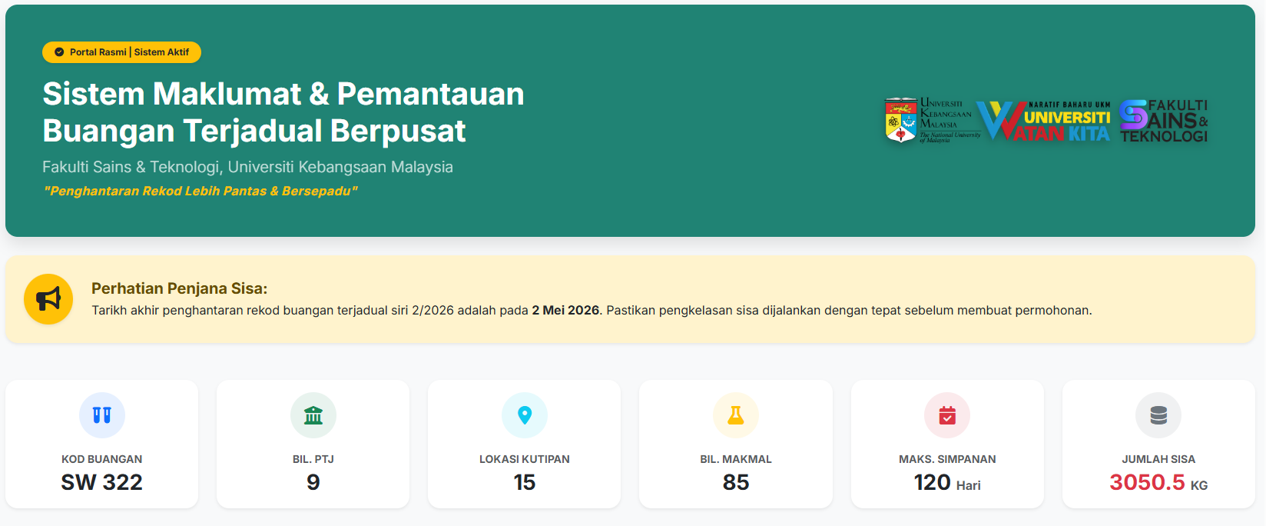 Permohonan Pelupusan Buangan Terjadual Bahan Kimia, Botol Kosong & Peralatan