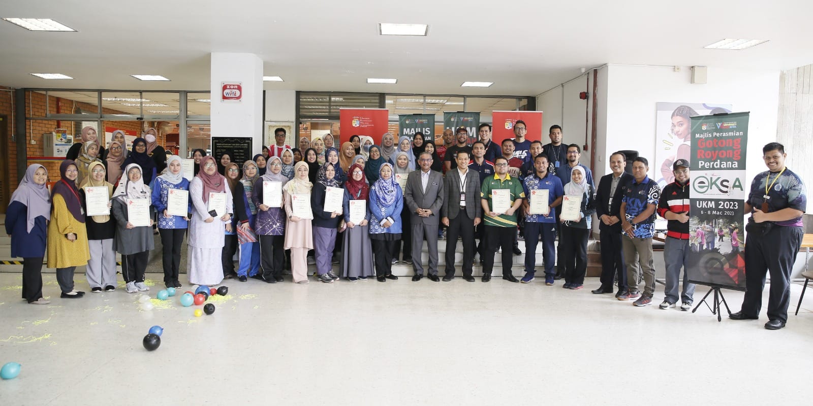 YBhg. Dato’ Dr. Syed Kamarudin Hj. Sadakkuthulla, Pendaftar UKM merasmikan Ekosistem Kondusif Sektor Awam (EKSA) Peringkat UKM dan Program Gotong-Royong Perdana EKSA UKM 2023.