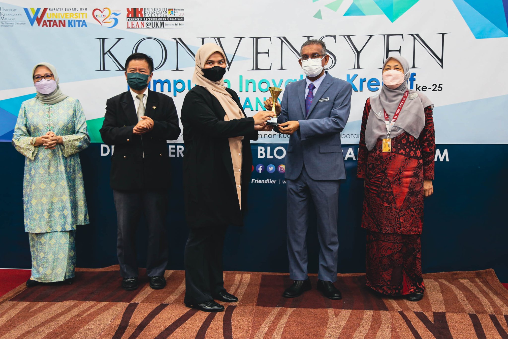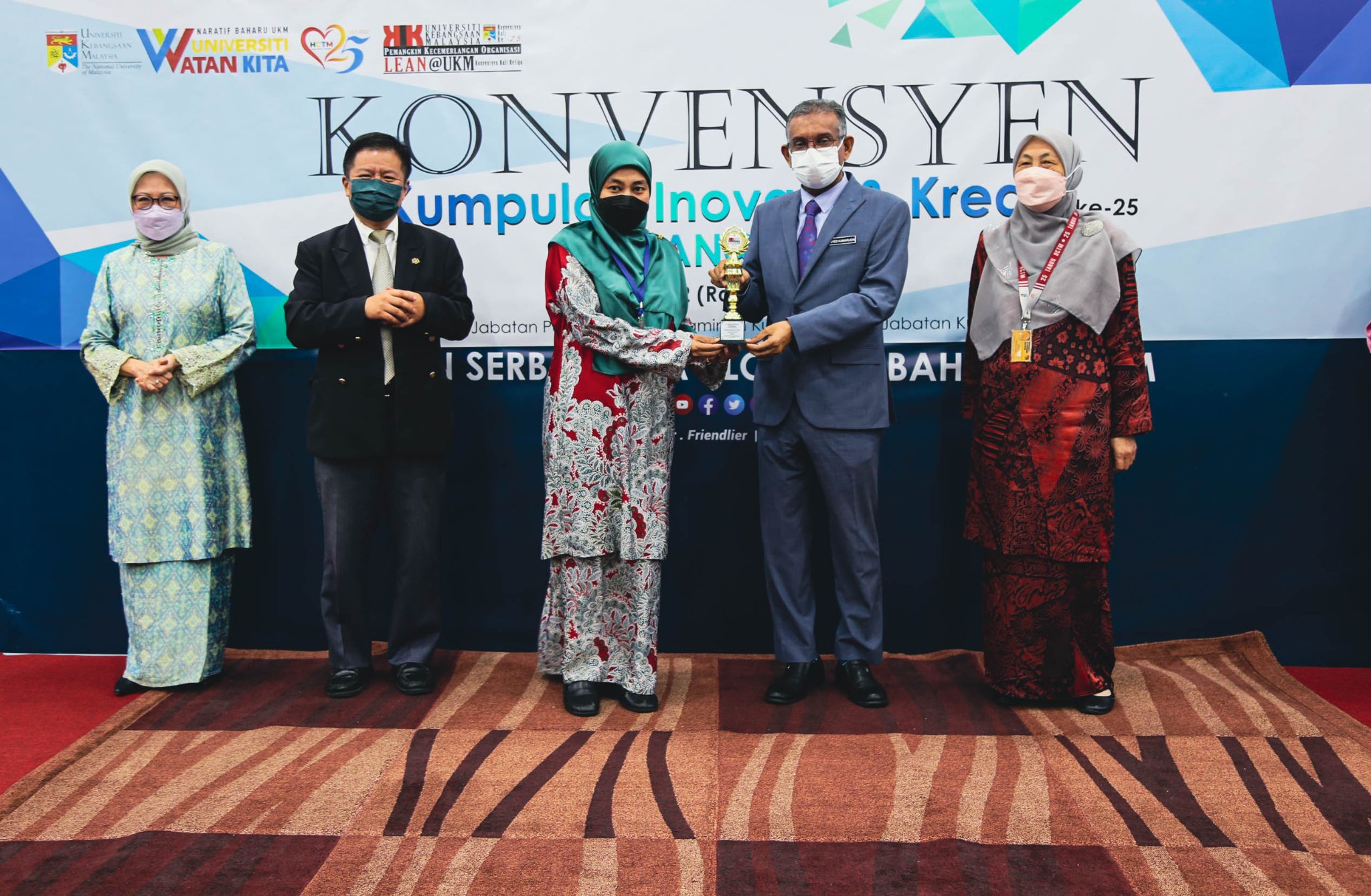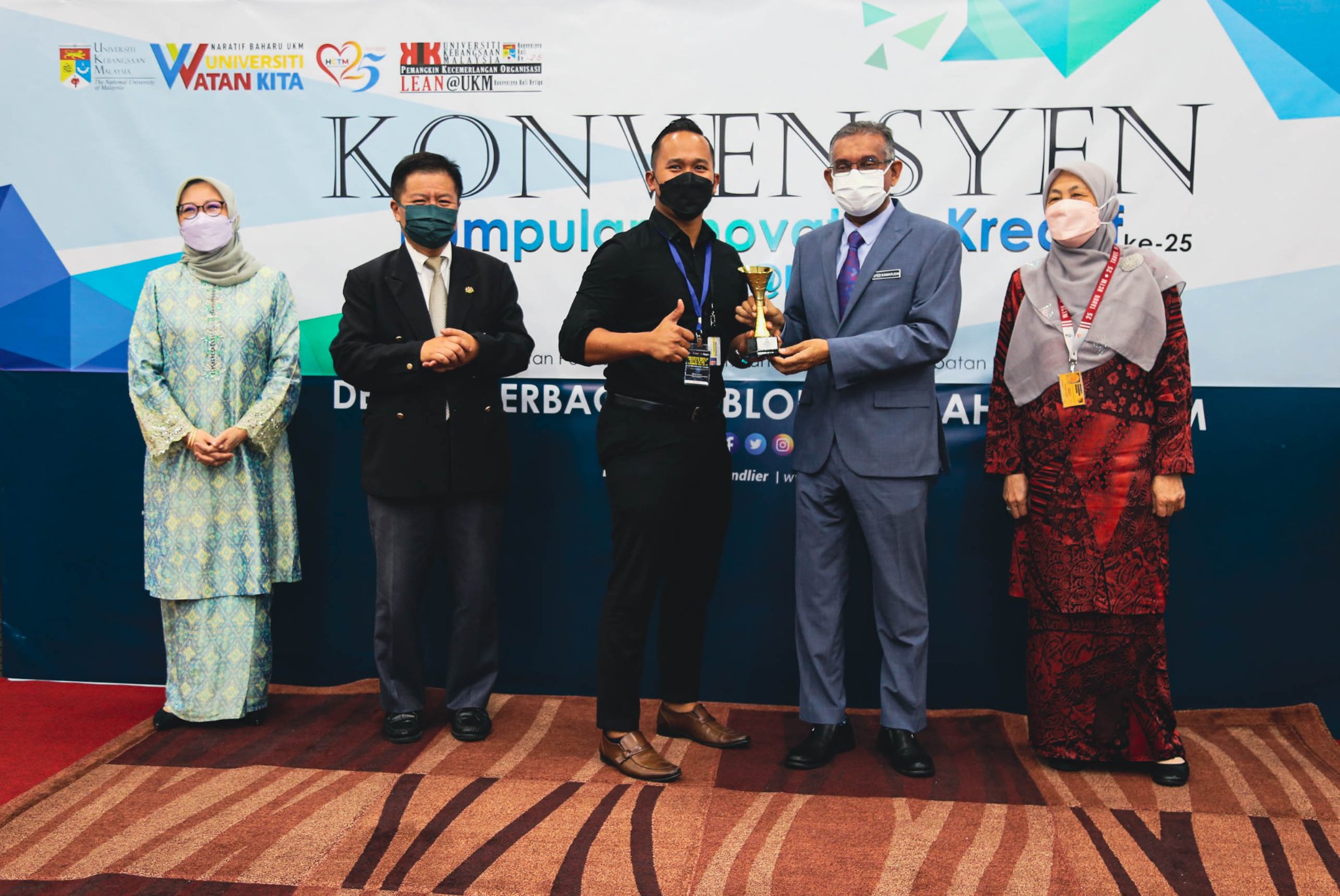 Majlis Penutup Konvensyen Kumpulan Invovatif & Kreatif UKM Kali ke-25 & Lean@UKM Kali ke-3 disempurnakan oleh YBhg. Dato’ Dr. Syed Kamarudin Sadak, Pendaftar UKM, YBhg. Prof. Dato’ Dr. Hanafiah Harunarashid, Pro Naib Canselor Kampus Kuala Lumpur, dan YBrs. Prof. Madya Dr. Hanita Othman, Timb. Pengarah HCTM Sebanyak 8 kumpulan KIK dan 6 kumpulan Lean@UKM telah menyertai pembentangan pada konvensyen pada kali ini.