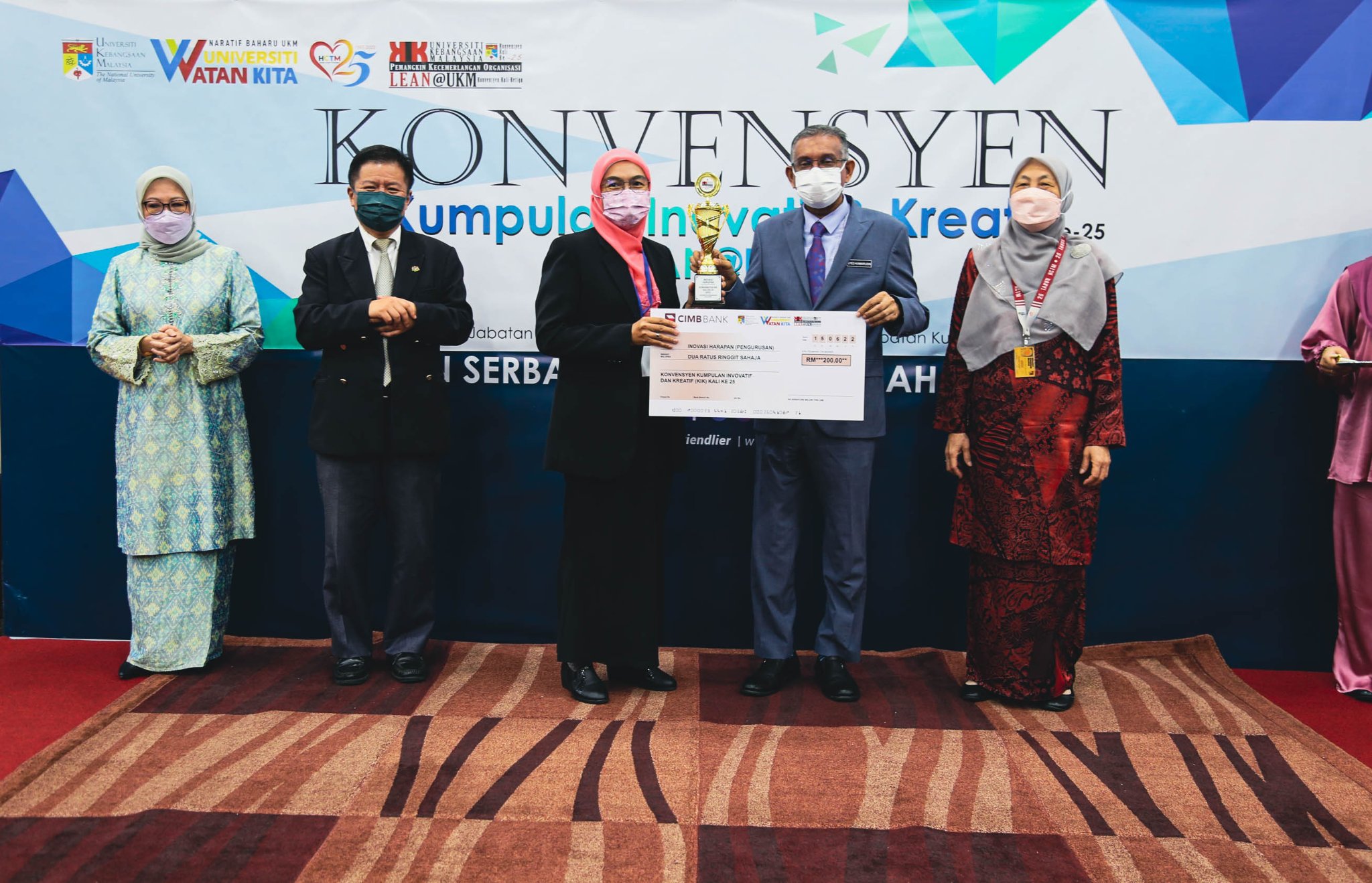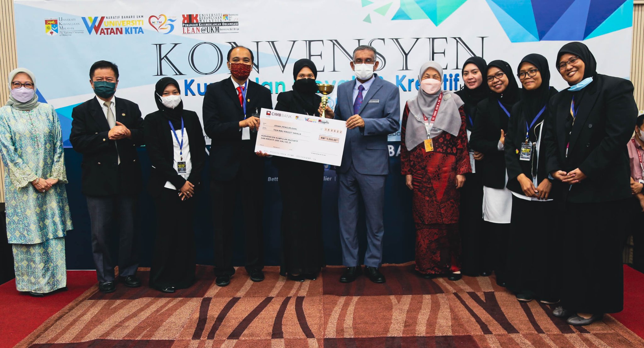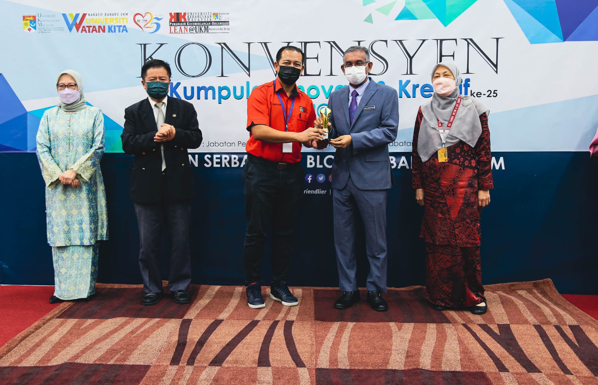 Majlis Penutup Konvensyen Kumpulan Invovatif & Kreatif UKM Kali ke-25 & Lean@UKM Kali ke-3 disempurnakan oleh YBhg. Dato’ Dr. Syed Kamarudin Sadak, Pendaftar UKM, YBhg. Prof. Dato’ Dr. Hanafiah Harunarashid, Pro Naib Canselor Kampus Kuala Lumpur, dan YBrs. Prof. Madya Dr. Hanita Othman, Timb. Pengarah HCTM Sebanyak 8 kumpulan KIK dan 6 kumpulan Lean@UKM telah menyertai pembentangan pada konvensyen pada kali ini.