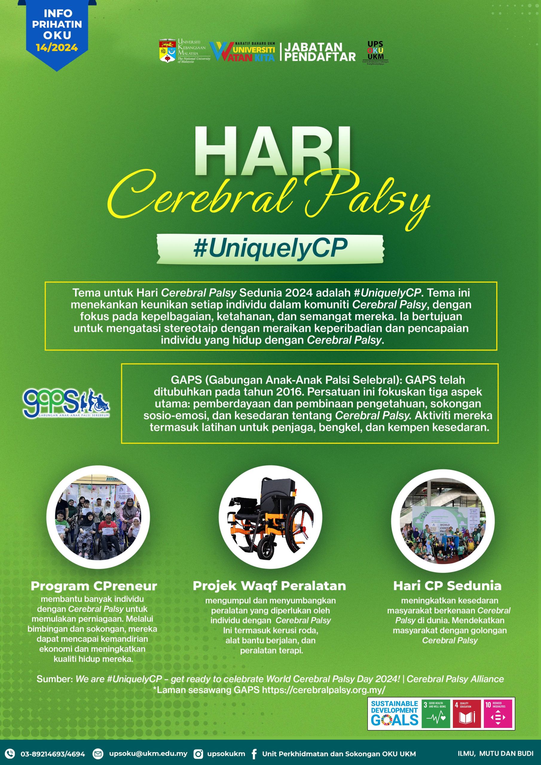 Unit Perkhidmatan dan Sokongan OKU UKMJabatan Pendaftar,Universiti Kebangsaan Malaysia, Aras 1, Bangunan Canselori, 43600 UKM Bangi, Selangor, Malaysia