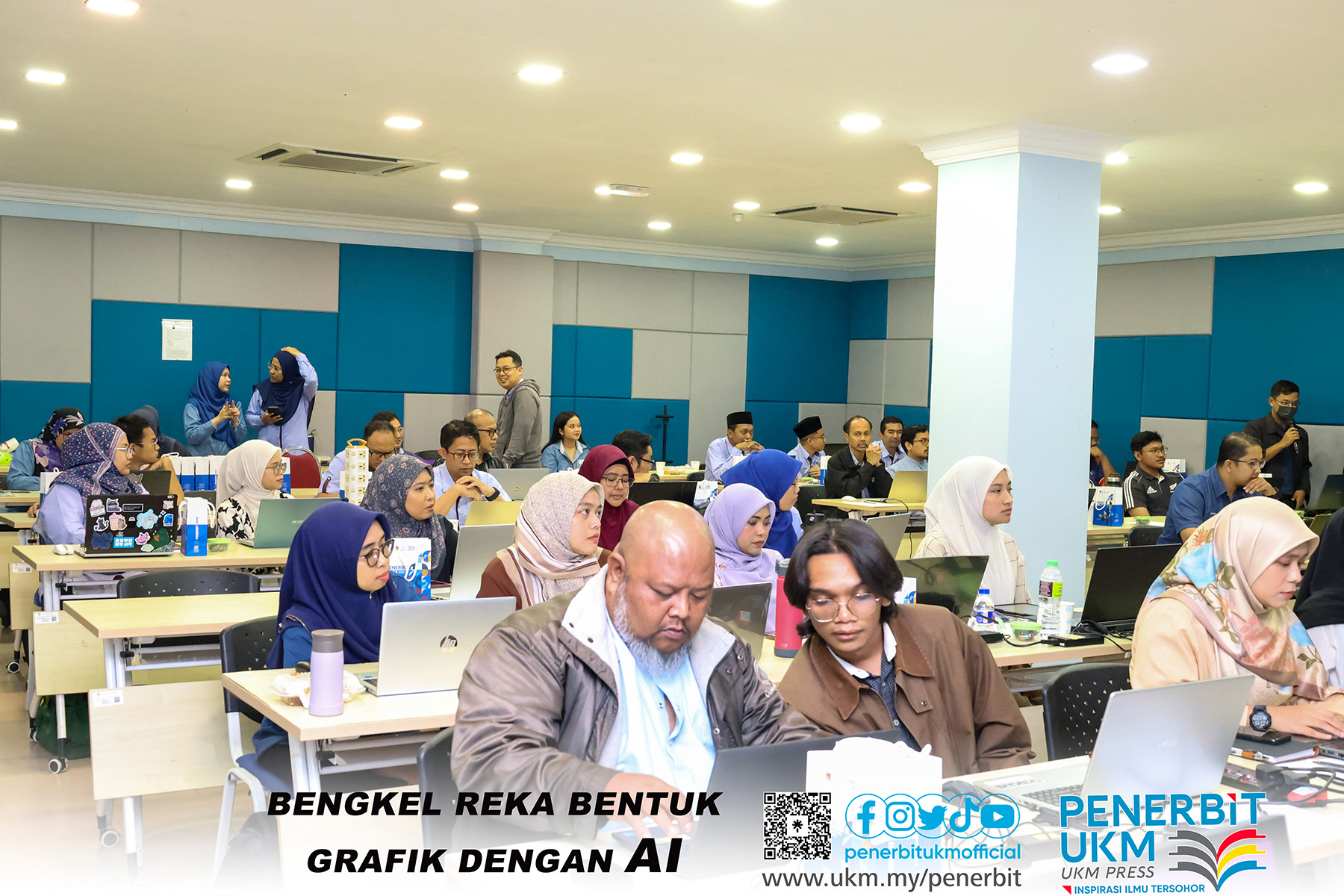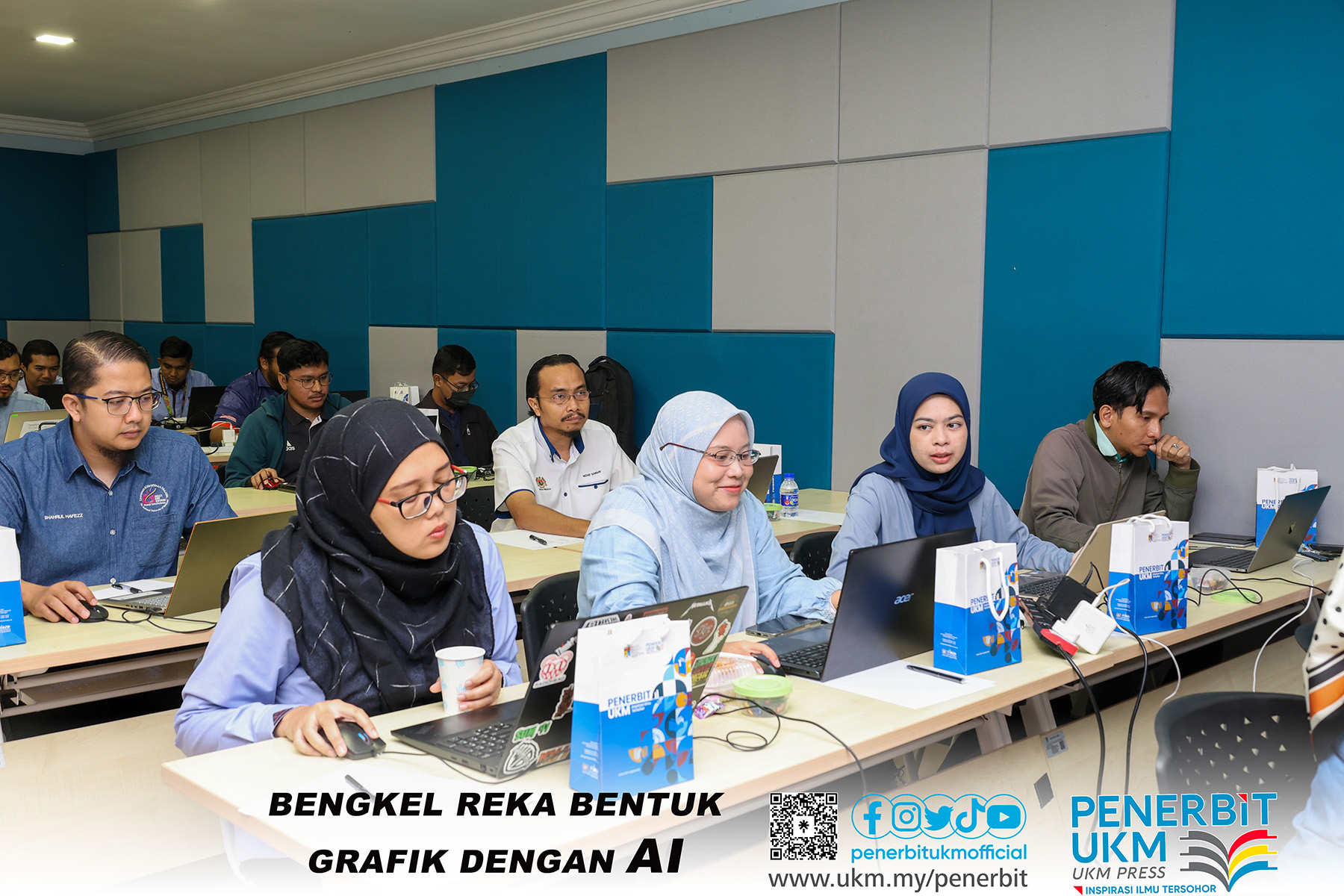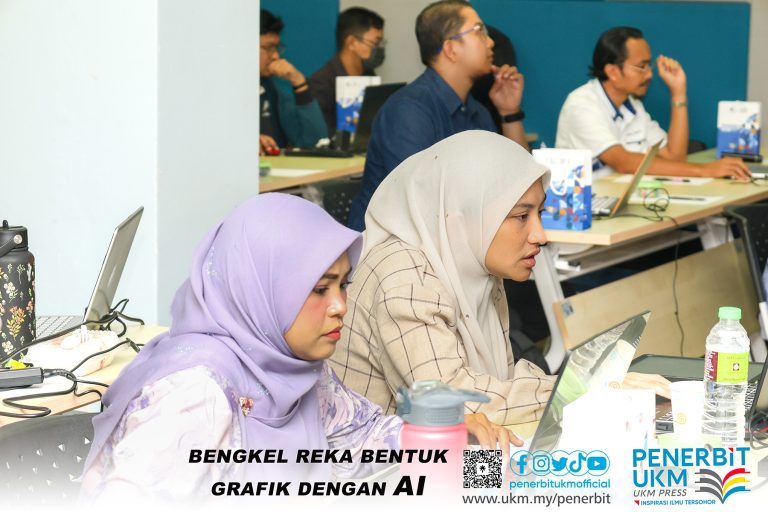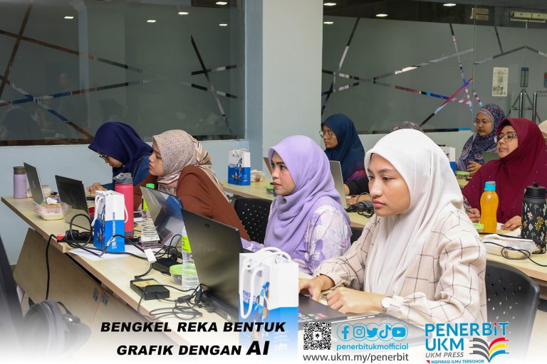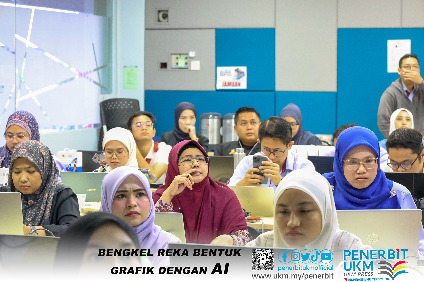BANGI, 11 September 2025 – Penerbit UKM telah berjaya menganjurkan Bengkel Reka Bentuk Grafik dengan AI (2025) pada 10 dan 11 September 2025 bertempat di Bilik Siswazah 19, Fakulti Ekonomi dan Pengurusan, Universiti Kebangsaan Malaysia (UKM). Bengkel selama dua hari itu berlangsung dari jam 8.30 pagi hingga 5.00 petang dengan penyertaan seramai 40 orang peserta yang terdiri daripada staf, pelajar UKM serta wakil pelbagai organisasi luar.
