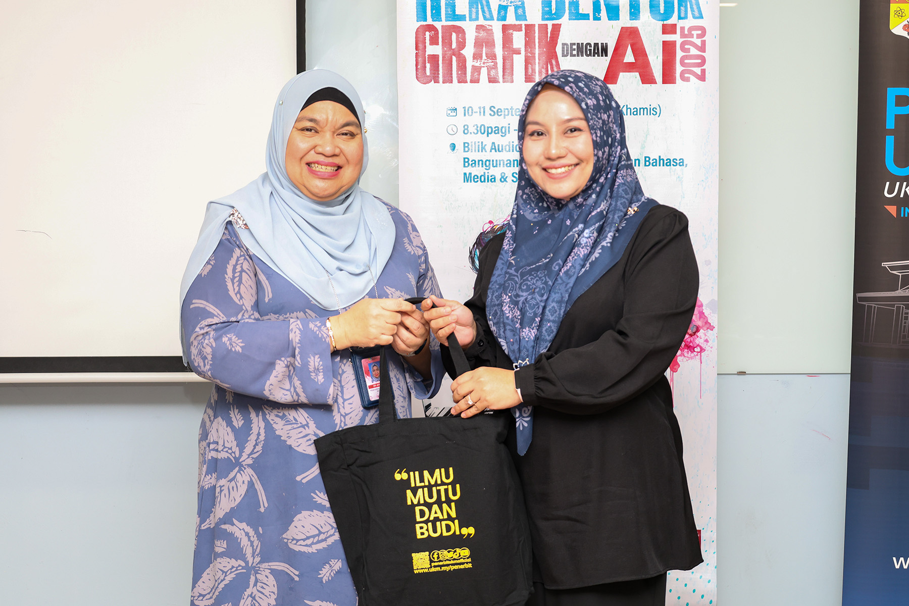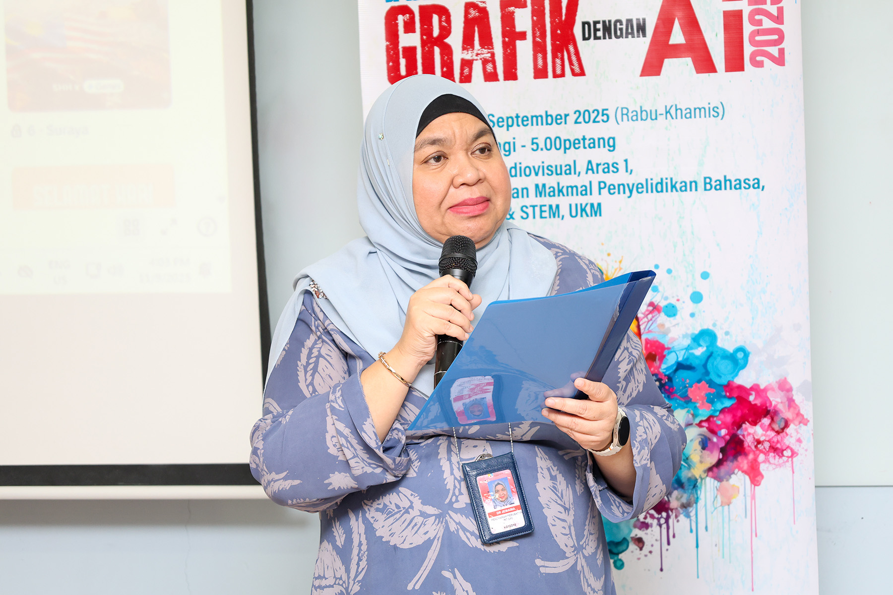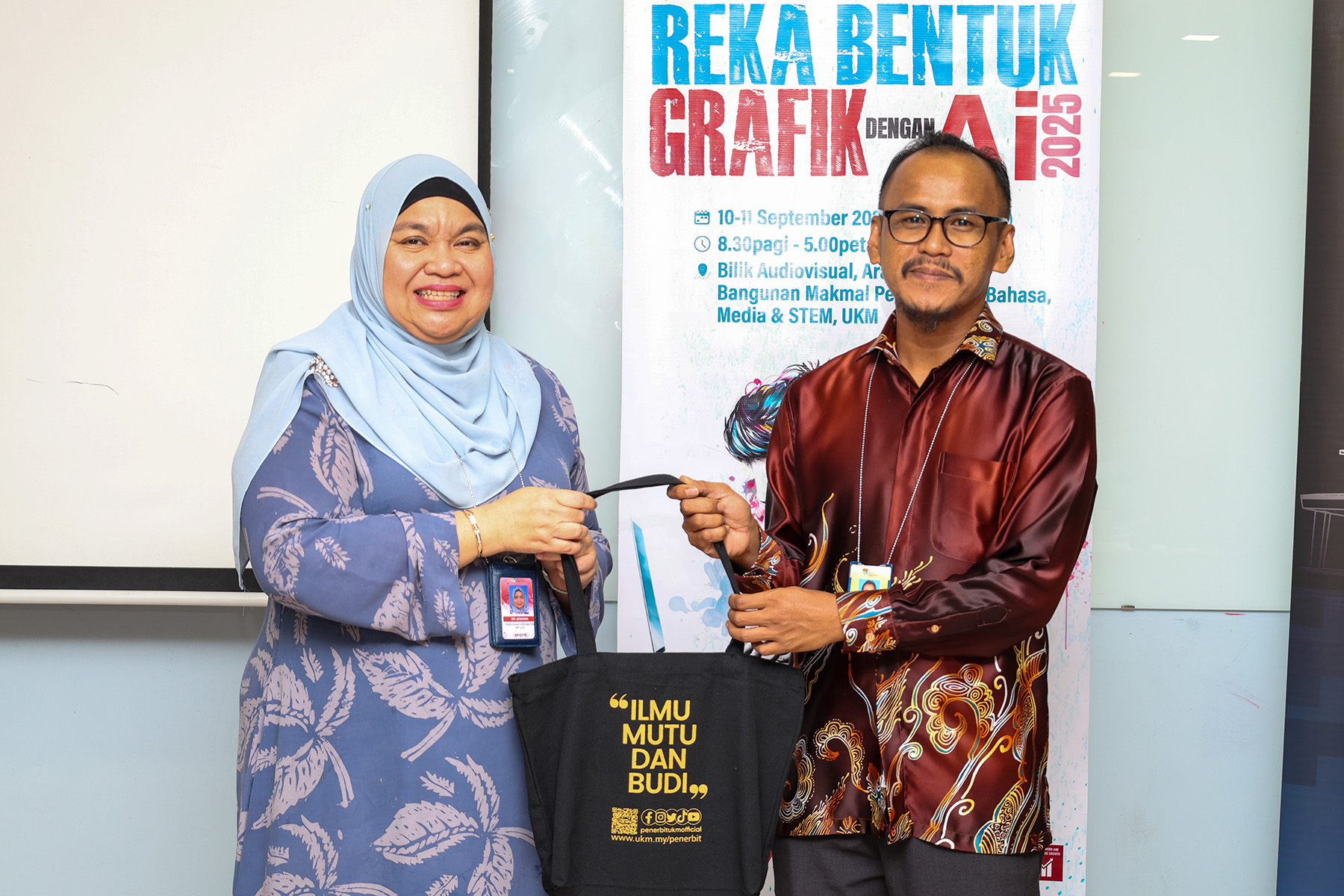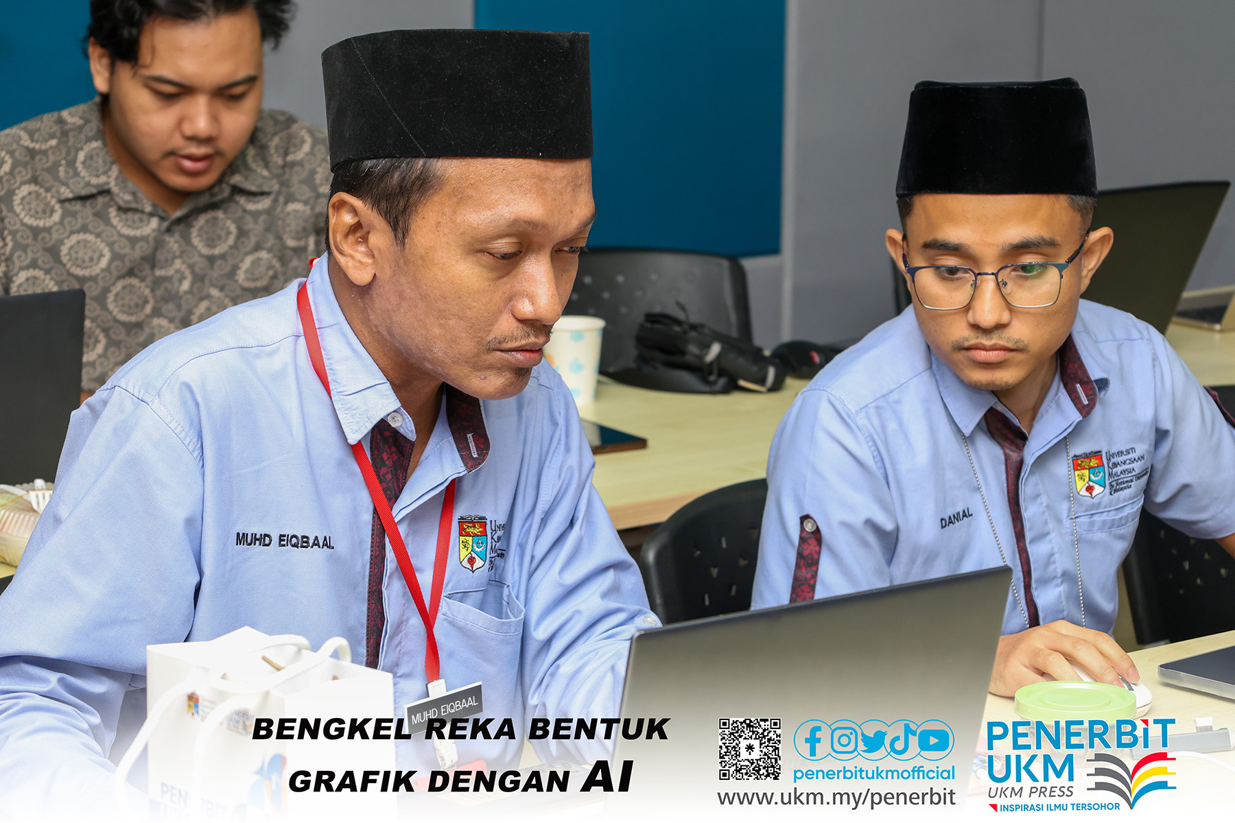 BANGI, 11 September 2025 – Penerbit UKM telah berjaya menganjurkan Bengkel Reka Bentuk Grafik dengan AI (2025) pada 10 dan 11 September 2025 bertempat di Bilik Siswazah 19, Fakulti Ekonomi dan Pengurusan, Universiti Kebangsaan Malaysia (UKM). Bengkel selama dua hari itu berlangsung dari jam 8.30 pagi hingga 5.00 petang dengan penyertaan seramai 40 orang peserta yang terdiri daripada staf, pelajar UKM serta wakil pelbagai organisasi luar.