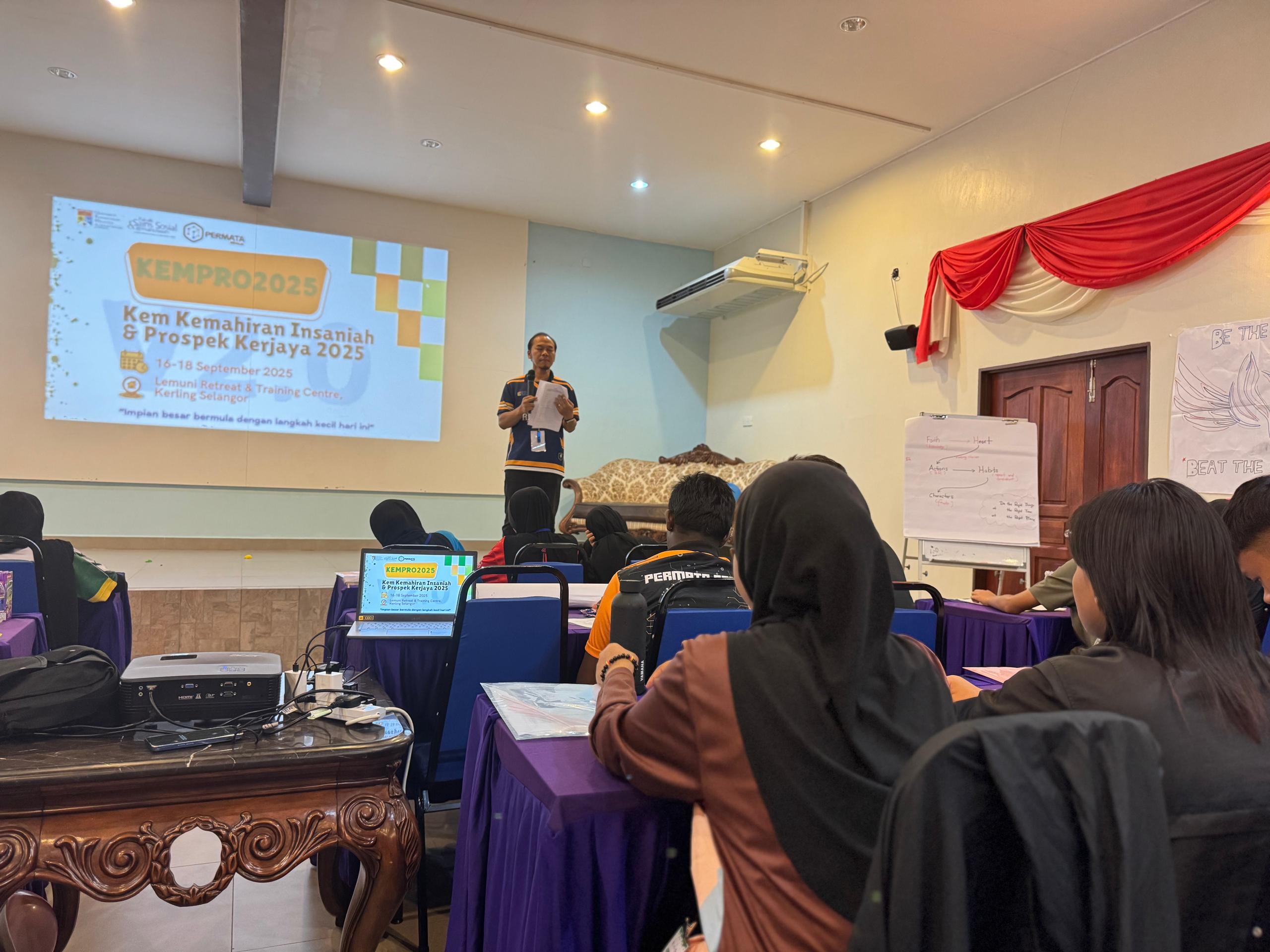 KERLING, 16 September 2025 – Pusat Pemerkasaan Remaja (PERKASA), Fakulti Sains Sosial dan Kemanusiaan (FSSK), Universiti Kebangsaan Malaysia (UKM) telah menganjurkan satu program iaitu Kem Kemahiran Insaniah dan Prospek Kerjaya Versi 2.0 atau nama singkatannya KEMPRO V2.0 pada 16 hingga 18 September 2025 di Lemuni Retreat & Training Centre, Kerling Selangor. Penganjuran program Kem Kemahiran Insaniah dan Prospek Kerjaya 2025 yang bertemakan “Remaja Hebat, Agen Transformasi Negara” dilaksanakan sebagai pendedahan kepada remaja terhadap pembangunan kemahiran diri dan mengenal prospek kerjaya serta kepimpinan pada masa hadapan. Program ini juga bertujuan untuk membentuk sahsiah dan akhlak mulia dalam kalangan remaja terutamanya berkaitan elemen spiritual dan kepimpinan. Kumpulan sasaran untuk KEMPRO V2.0 terdiri daripada kumpulan remaja kalangan B40 yang merangkumi daripada empat buah pusat komuniti sekitarnya iaitu di PA Desa Rejang, PPR Pantai Ria, PPR Sri Pantai dan PPR Kampung Muhibbah di bawah Program PERMATA Remaja. Peserta yang terlibat seramai 93 orang terdiri daripada umur 13 hingga 18 tahun. Pengisian untuk program kali ini berfokuskan kepada kepimpinan dan sahsiah diri yang terdiri daripada beberapa slot dan latihan dalam kumpulan (LDK).