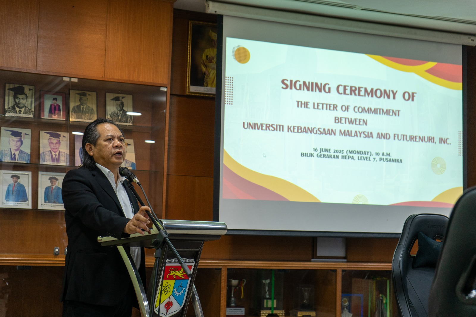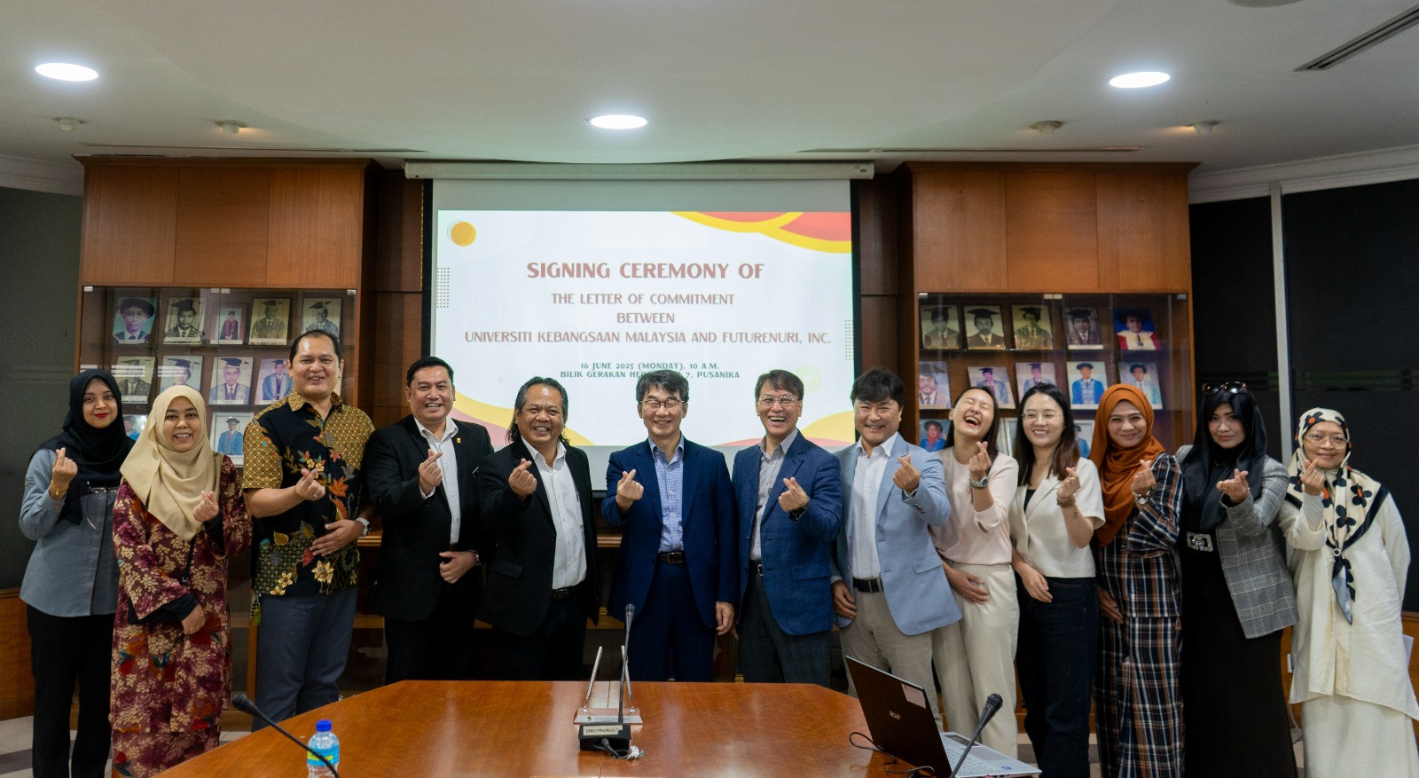 BANGI, 16 Jun 2025 – Satu acara penuh bermakna telah berlangsung di Universiti Kebangsaan Malaysia (UKM) sempena Majlis Menandatangani Surat Komitmen antara UKM dan Futurenuri, Inc., sebuah syarikat korporat digital dari Korea Selatan yang diiktiraf kepakarannya dalam bidang ICT. Majlis ini menyaksikan jalinan kerjasama rasmi bagi pembangunan platform pembelajaran digital untuk Program PERMATA Remaja. Majlis yang berlangsung di Bilik Gerakan HEPA, PUSANIKA telah dimulakan dengan ucapan oleh Dr. Nasrudin Subhi, Ketua Pusat Pemerkasaan Remaja (Centre for Youth Empowerment), dan dihadiri tetamu kehormat termasuk Profesor Dr. Kadaruddin Aiyub, Dekan Fakulti Sains Sosial dan Kemanusiaan, serta Mr. Choo Jeong-Ho, Ketua Pegawai Eksekutif Futurenuri, Inc. Turut hadir ialah Dr. Mohd Suhaimi Mohamad, Timbalan Dekan Jaringan Industri dan Komuniti, serta delegasi dari Futurenuri, Inc. dan felo penyelidik PERKASA UKM.