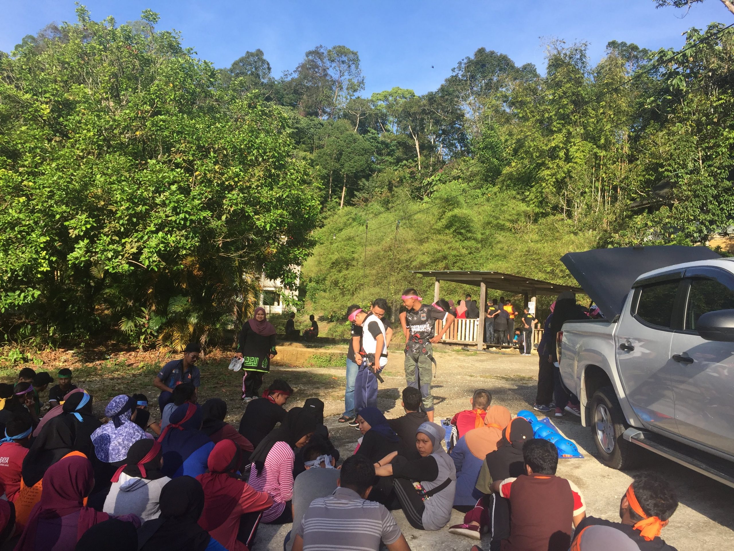 Peserta menunggu giliran sebelum melakukan aktiviti abseiling.