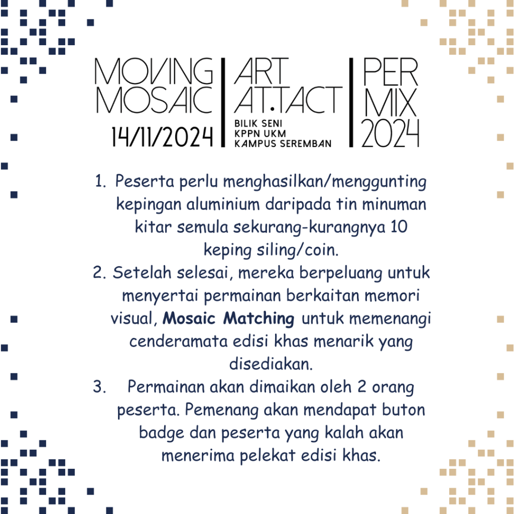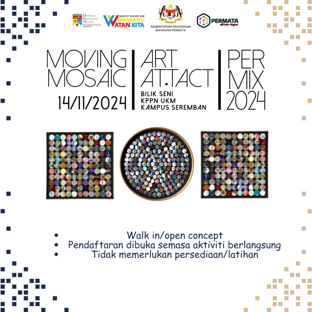 Bersempena PERMATA Mix Tape iaitu Minggu Sains Sosial KPPN UKM, F1iS tidak ketinggalan untuk membuka kelas untuk menghasilkan art installation bertajuk ART AT.TACT: Moving Mosaic, menggunakan bahan-bahan kitar semula iaitu tin aluminium terbuang. Aktiviti yang bermula seawal pukul 8.00 pagi dan berakhir pada pukul 12.30 tengah hari ini telah mendapat sambutan menggalakkan daripada kalangan murid Asas 1 dan Asas 2. Peserta secara berpasangan, dikehendaki menghasilkan 10 kepingan aluminium berbentuk bulatan untuk digunakan sebagai elemen utama dalam penghasilan art installation. Sebanyak 400 tin minuman akan digunakan untuk penghasilan seni berkenaan. Setelah itu, mereka berpeluang untuk bermain Kad Memori, permainan yang akan menguji kekuatan ingatan peserta. Logo-logo atau imej-imej yang digunakan merupakan logo-logo pasukan F1 in Schools yang telah mewakili KPPN UKM di peringkat negeri, kebangsaan dan antarabangsa. Peserta yang menang akan menerima button badge esisi khas ART AT.TACT manakala peserta yang kalah akan menerima pelekat edisi khas.