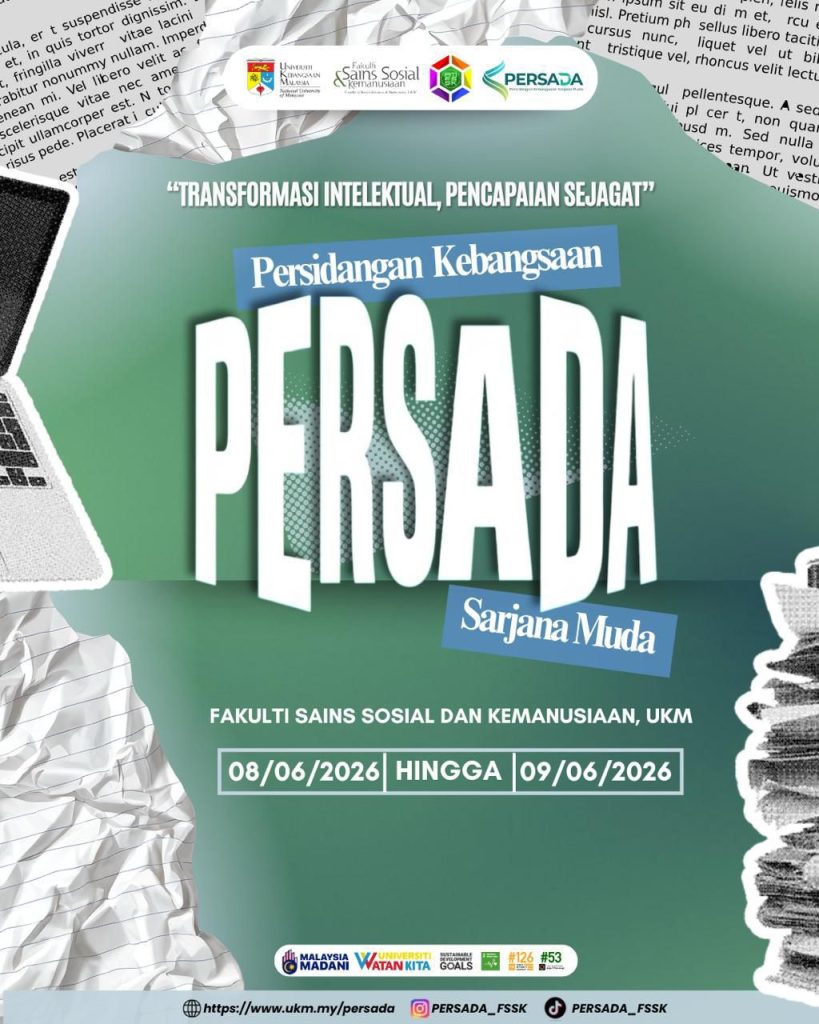 PERSADA 2026 Tarikh Persidangan : 8 Jun 2026 – 9 Jun 2026 (Isnin – Selasa) Masa : 8.30 Pagi – 5.00 Petang Tempat : Fakulti Sains Sosial dan Kemanusiaan, Universiti Kebangsaan Malaysia, Bangi, Selangor