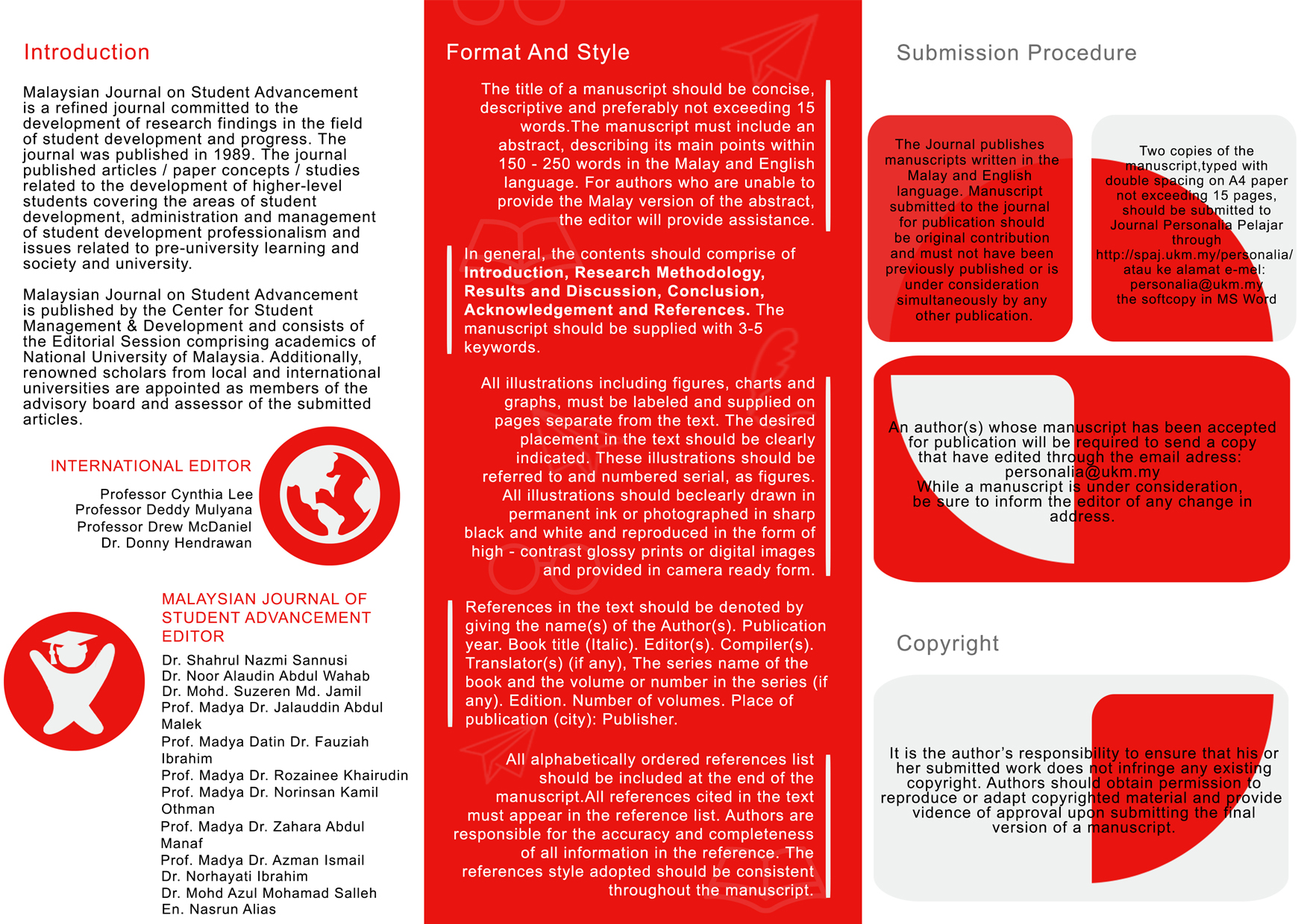 Jurnal Personalia Pelajar (also known as Malaysian Journal of Student Advancement) is a refereed bilingual journal committed to advancing scholarly knowledge and research findings on student development. The journal publishes articles, reviews and research notes whose content and approach are of interest to a wide range of parties. In addition, the journal is also published twice a year, in June and December each year.