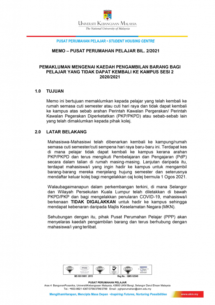 PUSAT PERUMAHAN PELAJAR (STUDENT HOUSING CENTRE)