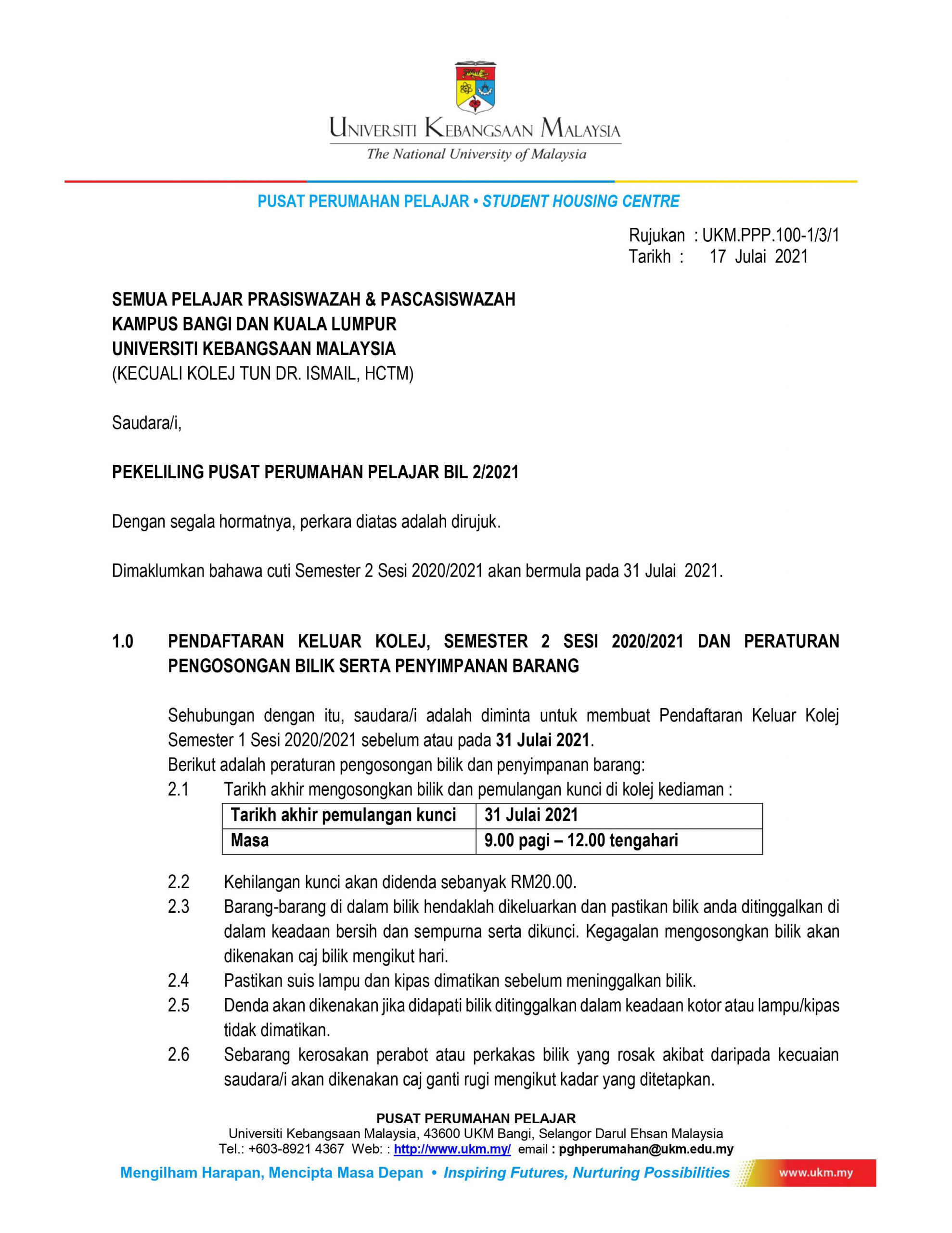 Pekeliling Pusat Perumahan Pelajar Bil 2/2021