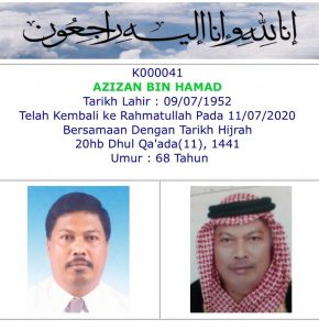 Dukacita dimaklumkan bahawa Hajjah Mahani bt Mohd Yatim telah kembali ke rahmatullah jam 5 pagi tadi (21 April 2020) di Hospital Serdang