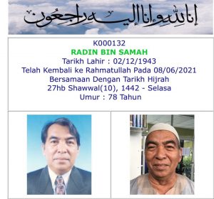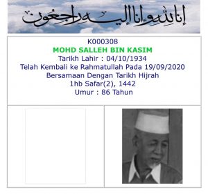 Takziah kepada keluarga Hj Mansoor Hj Ahmad (Ahli no. 119) di atas berpulangnya kerahmatullah isteri beliau Hjh Salamah pada 6 Mei 2015. Semoga roh Allahyarhamah ditempatkan dalam golongan orang-orang yang solehah. Amin.