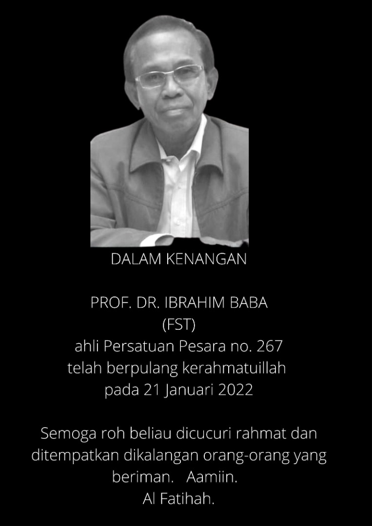 Mewakili Persatuan Pesara UKM, kami mengucapkan takziah kepada semua keluarga Allahyarham/Allahyarhamah. Semoga roh Allahyarham/Allahyarhamah dicucuri rahmat dan dimasukkan ke dalam golongan orang-orang yang soleh/solehah. Amin.